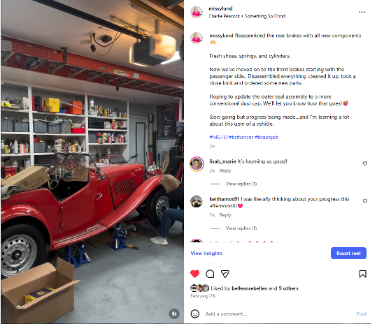 Here is a sample of a post from my Instagram account where I am restoring a 1953 MG TD: