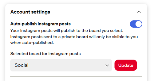 In either case, the board destination is editable in Pinterest settings, allowing creators to choose where new auto-published Pins are initially saved.