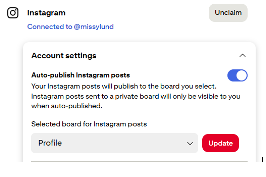 - The ability to auto-publish new Instagram posts as Pins